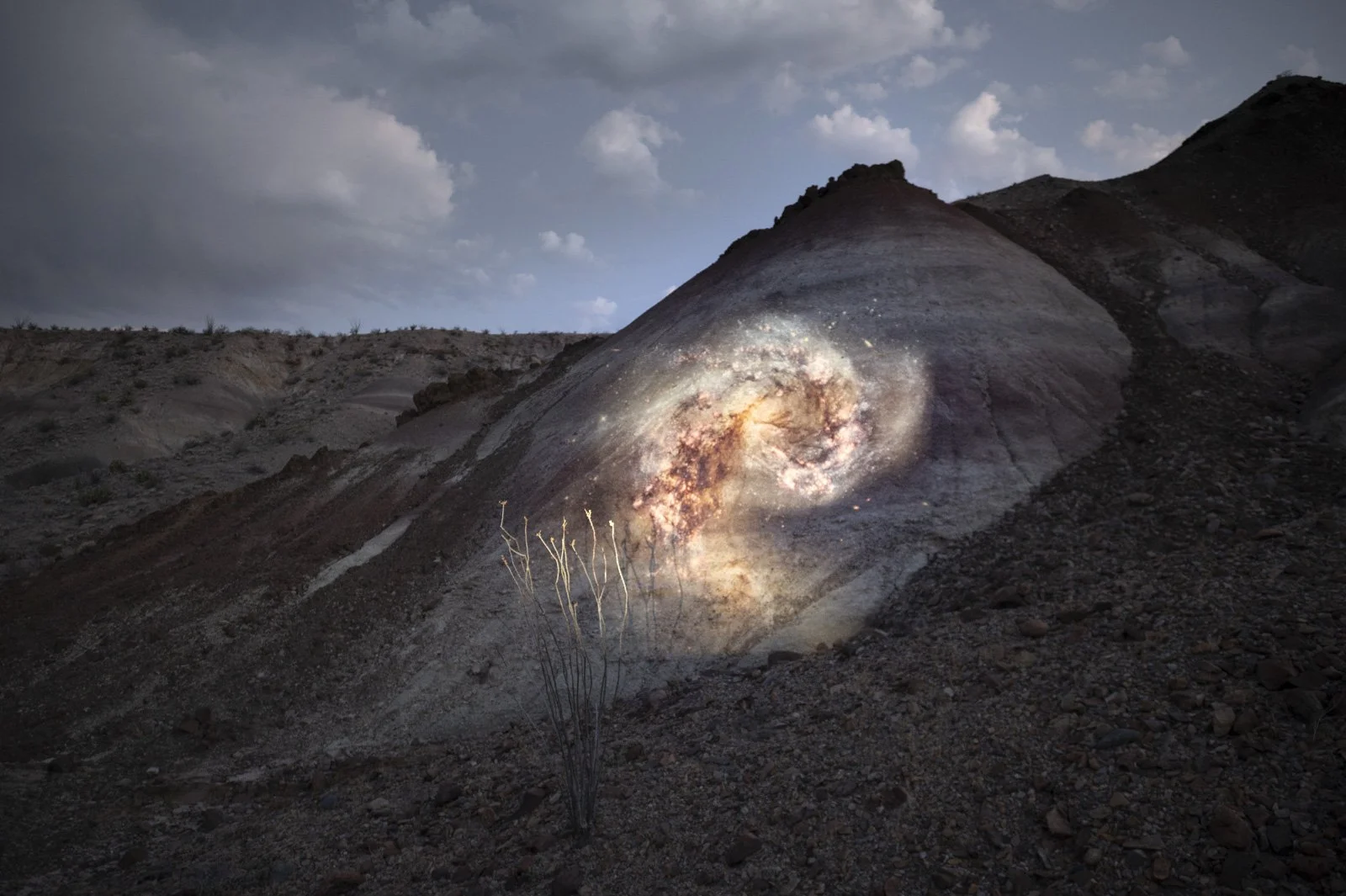 Just over a year ago, during my residency with Grand Canyon Conservancy, the images of black holes were still imaginary: they were never observed. The “rule” I made for Pilgrimage of Light, is that I only project celestial photographs, not illustrations. This makes sense, because my concept conveys the time it takes for the light to travel to us. A photograph from the galactic light that actually makes the journey to reach the sensors of the cameras behind the telescope, is required; drawings of galaxies, no matter how cool they look, are conceptually inappropriate.